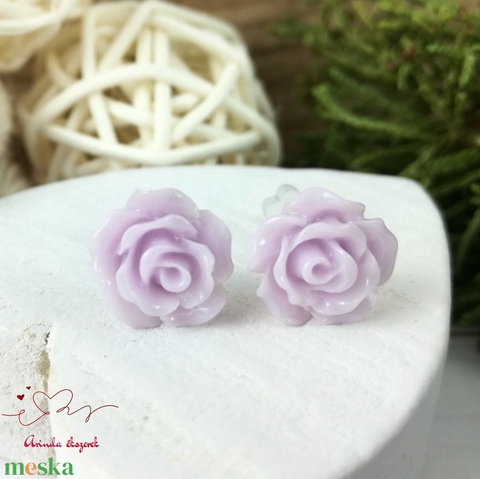 Levendula rózsás bedugós fülbevaló – 10 mm, nemesacél alapú elegáns virág ékszer