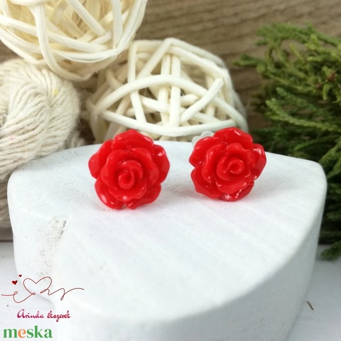 Piros rózsás bedugós fülbevaló – 10 mm, nemesacél alapú elegáns virág ékszer