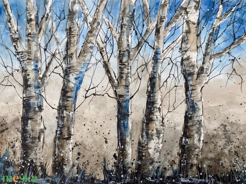 Eredeti akvarell (A4) - Nyírfák