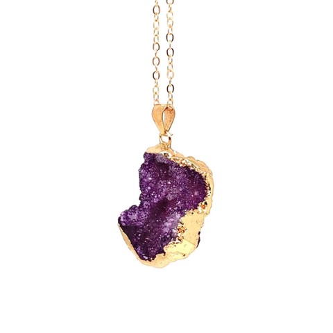 Intuíció kvarc geóda medál lila színezett nyaklánccal réz díszítéssel 3–4cm