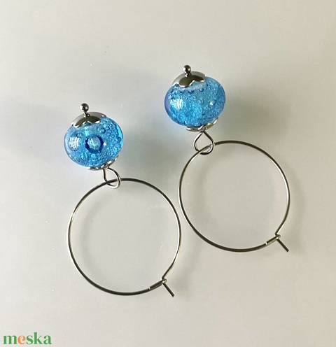 Tenger lámpagyöngy fülbevaló, üvegékszer