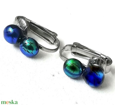 ORVOSI ACÉL KLIPSZ. Kék-zöld dichroic gyöngyök, trendi klipszes fülbevaló.