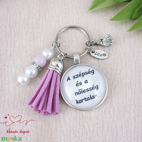 „A szépség és a nőiesség kortalan” idézetes kulcstartó – nőnapi, anyák napi ajándék nőknek