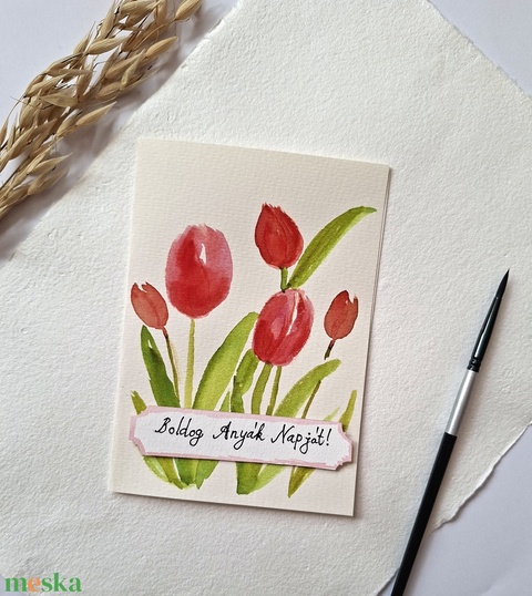 Tulipános anyáknapi köszöntő lap tavaszi dekoráció, asztaldísz, húsvéti dísz