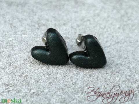 FEKETE SZÍV nemesacél fülbevaló