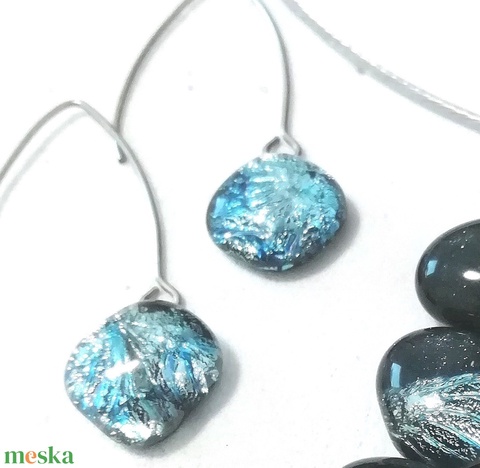 AKCIÓ! NEMESACÉL! Kék-ezüst kavicsok dichroic fülbevaló.