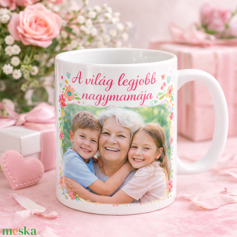 A világ legjobb nagymamája – Fényképes, egyedi feliratos bögre