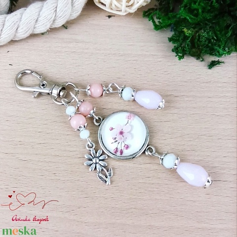 Cseresznyevirágos üveglencsés kulcstartó – romantikus ajándék nőknek