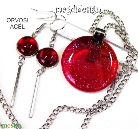 MAXI Galaxis bíbor-pink üvegékszer szett, nyaklánc, lógós fülbevaló