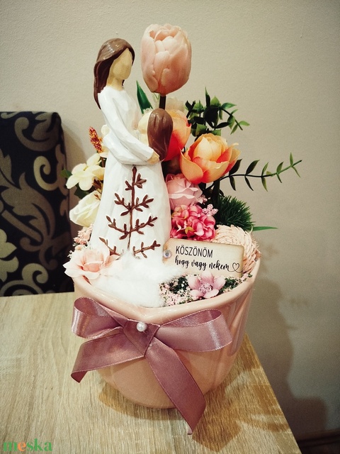 - Anyag/Összetevő anya lánya figura, szárazvirág, művirág, kaspó, táblácska