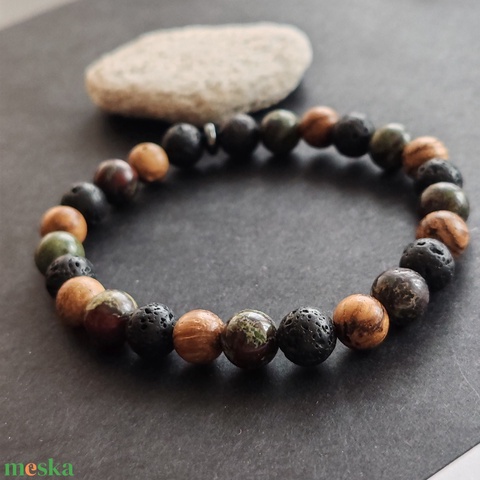 Bambusz- lávakő - sárkányvér jáspis férfi gumis karkötő