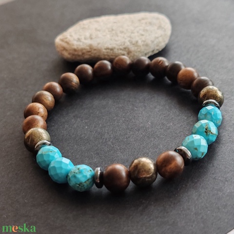 Bambusz- türkinit - pirit férfi gumis karkötő