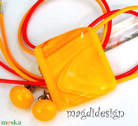 Sárga-piros áramlás üvegékszer szett nyaklánc, stiftes fülbevaló 1