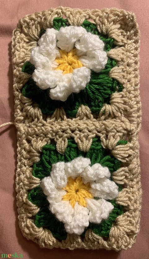 Szemüveg tok, mobil tok, ezsz tartó horholt fehér virággal eladó