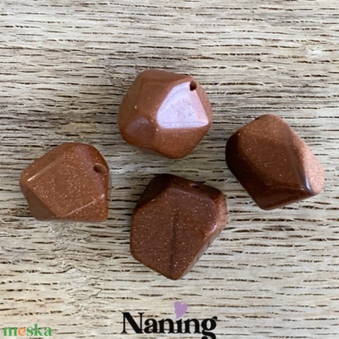4db homokkő(goldfluss) - amorf gyöngy - fúrt - aranybarna - kb: 15mm