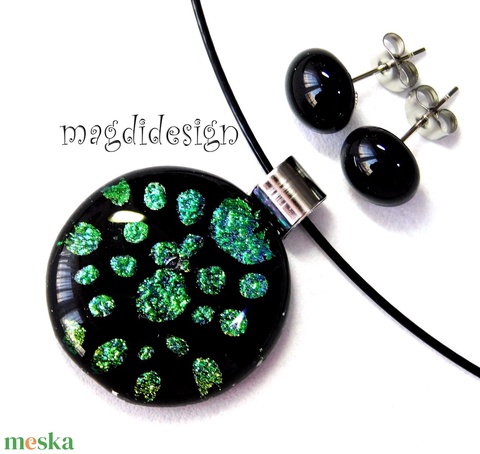 Univerzum türkiz-zöld feketén üvegékszer szett, nyaklánc, stiftes fülbevaló