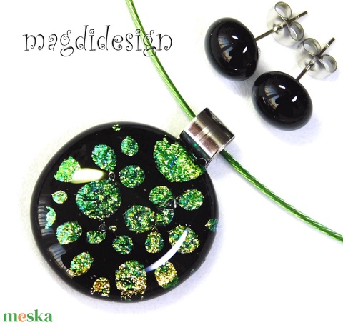 Univerzum arany-zöld feketén üvegékszer szett, nyaklánc, stiftes fülbevaló