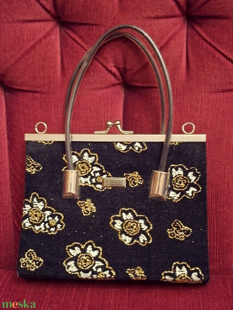 Elegáns fekete gyöngyözött, himzett táska