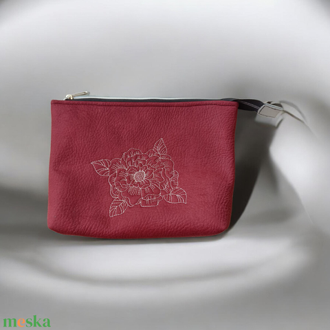 Rózsás hímzett textilbőr neszeszer / cipzáras tok