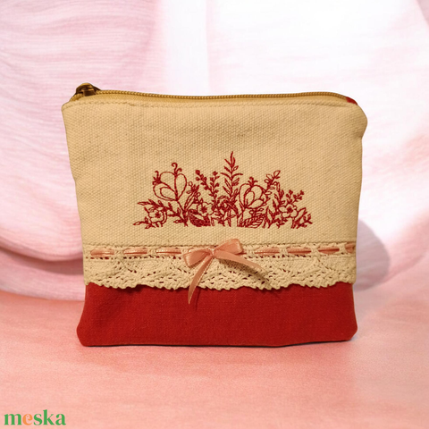 Romantikus hímzett neszeszer, cipzáras tok