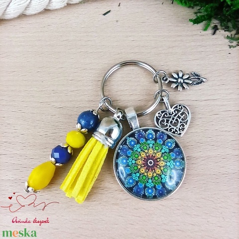 Kék mandala kulcstartó sötétkék bojttal – harmonikus ajándék nőknek
