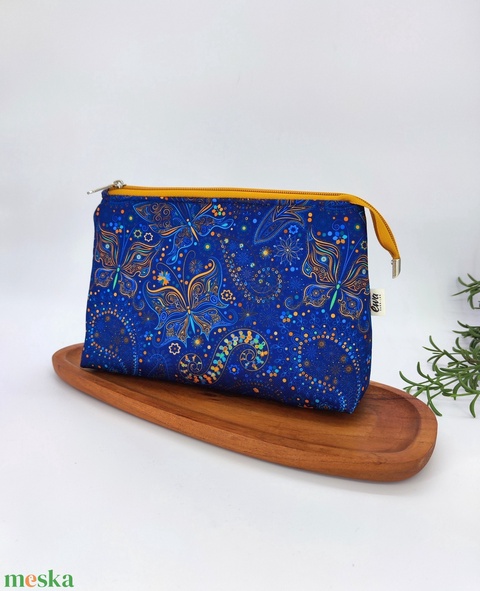 "Kalandor" cipzáras tároló utazó neszesszer,kék alapon pillangók