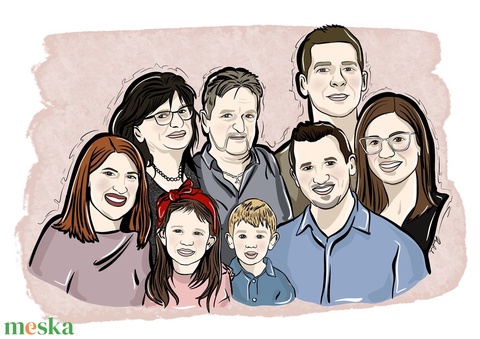 Egyedi portré fotó alapján – Kézzel rajzolt egyéni vagy családi portré, személyre szabott ajándék