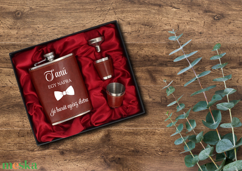 "Tanú EGY NAPRA" bőr hatású laposüveg szett , flaska szett tanú felkèrő