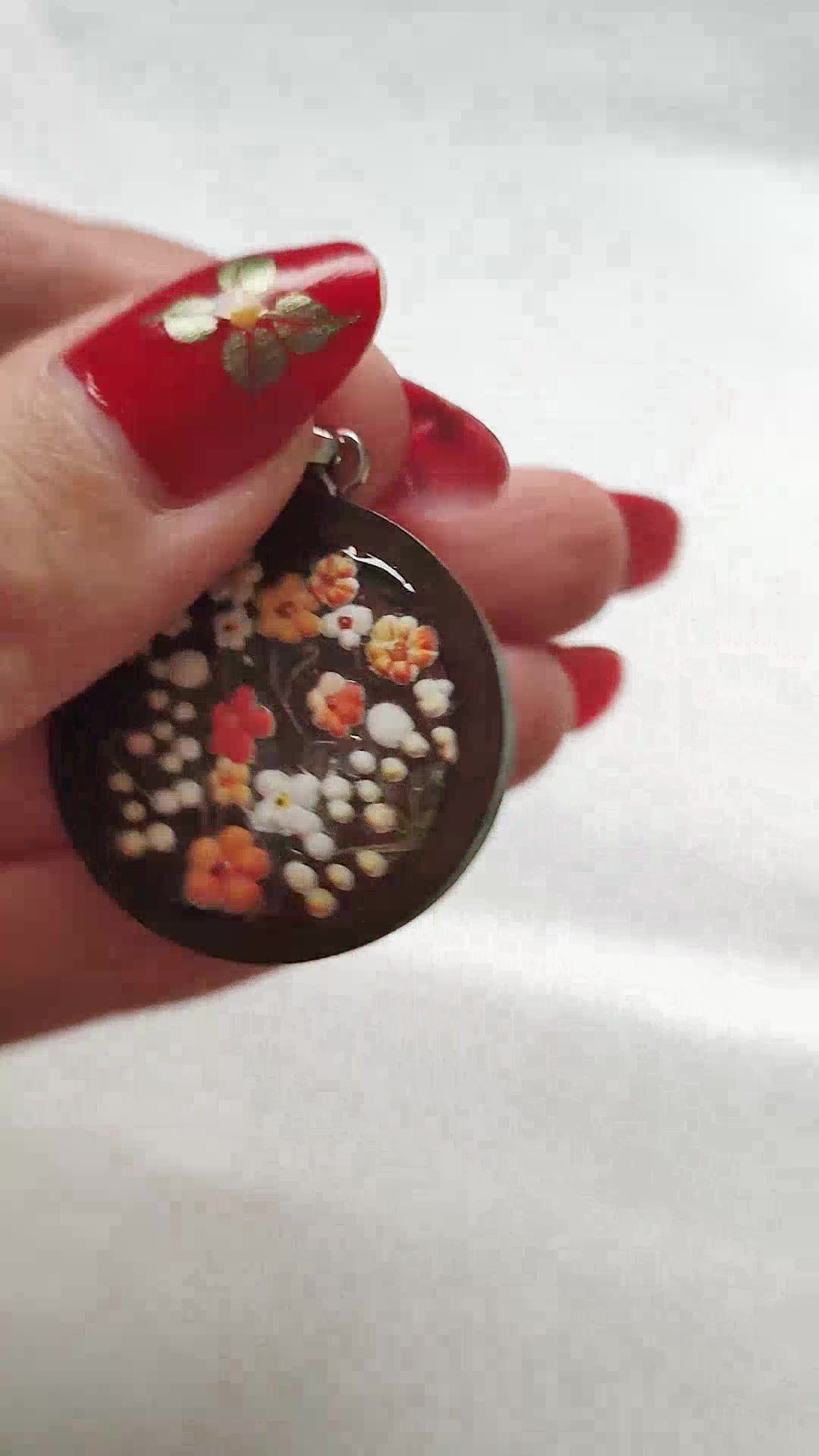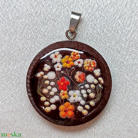 Virágos Kert Kézműves Műgyanta Medál Fa Színű Kerek Alapon