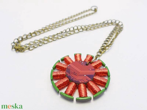 Piros Tesla-tekercs medál bronz láncon