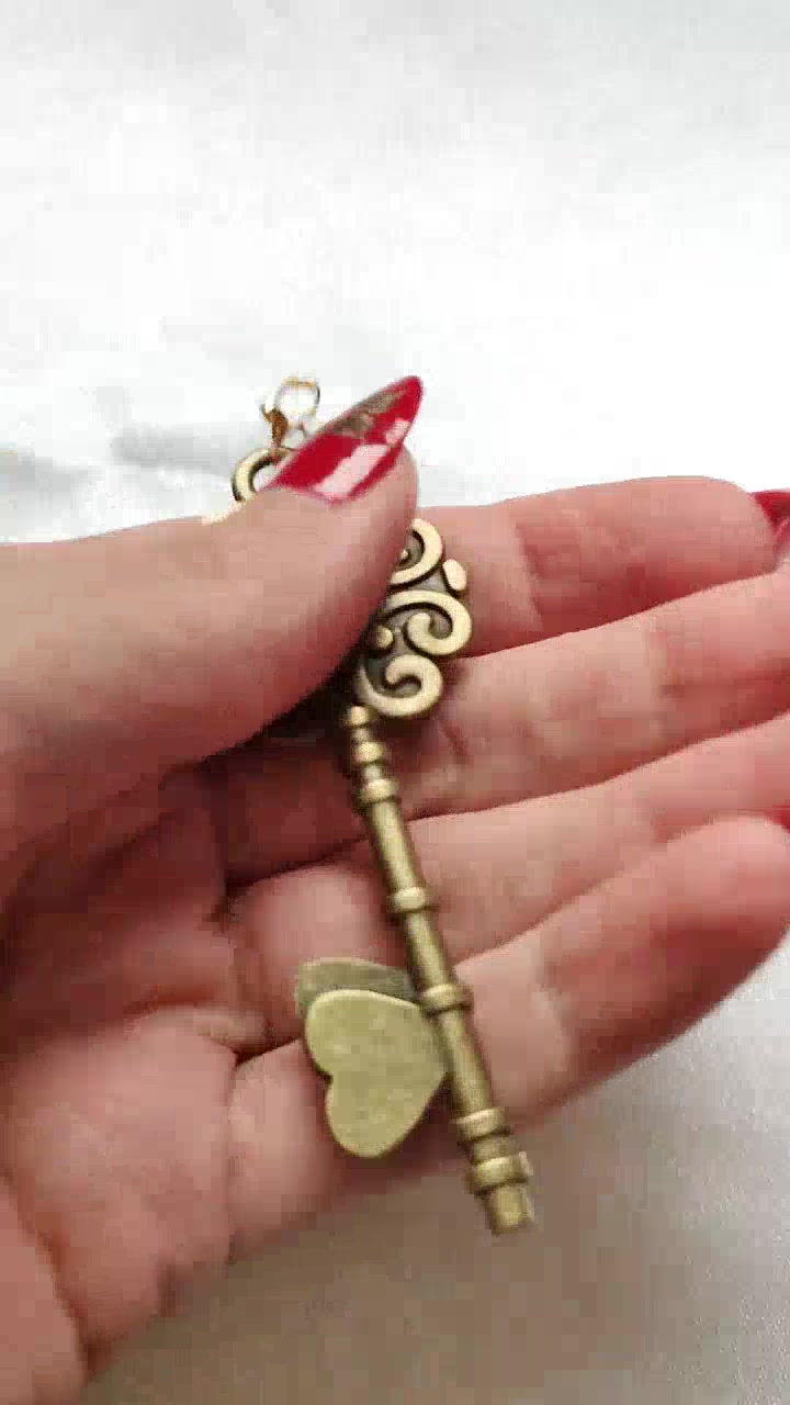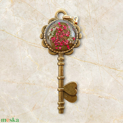 Kulcs alakú szivecskés apró virágos medál