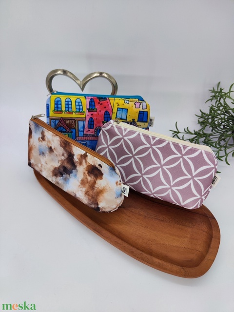 Cipzáros tároló, neszesszer-Föld színei minta, Hátikós minta, Mályva alapon geometriai minta