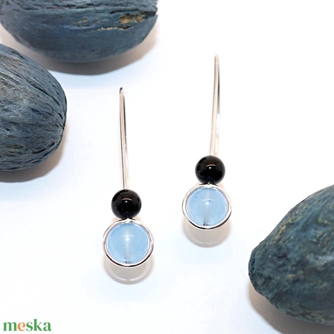 Jáde és ónix köves, női ezüst fülbevaló pár (EF.200)