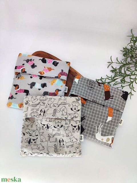 Tízórais / Uzsis zsák Kutyás minta - Fekete natúr alapon, Kockás alapon színes kutya, Színes tacskók