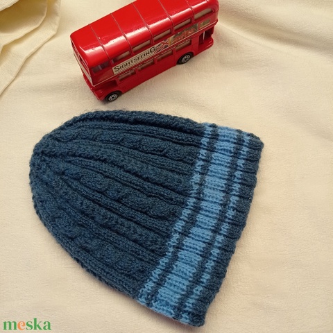 Kisfiú sapka tavaszra. Kötött, csavarásokkal bordákkal