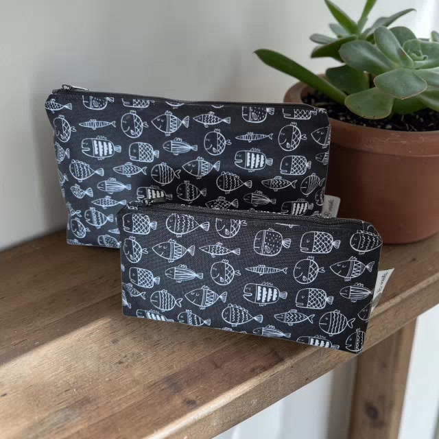 Neszesszer vízálló poliészterből - fekete halak