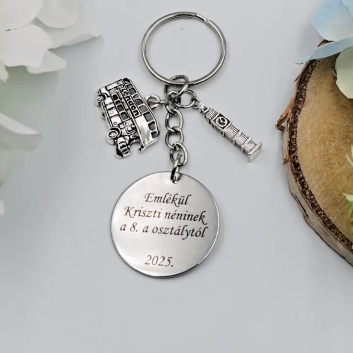 Ajándék angoltanároknak ballagásra, pedagógusnapra, tanév végére - Gravírozott szöveges ballagási kulcstartó 5.