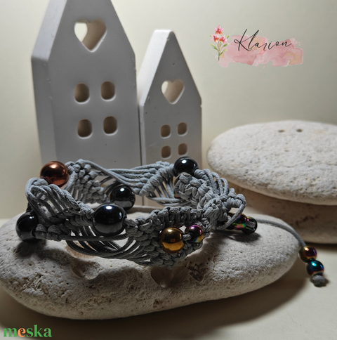 Szürke makramé karkötő hematittal