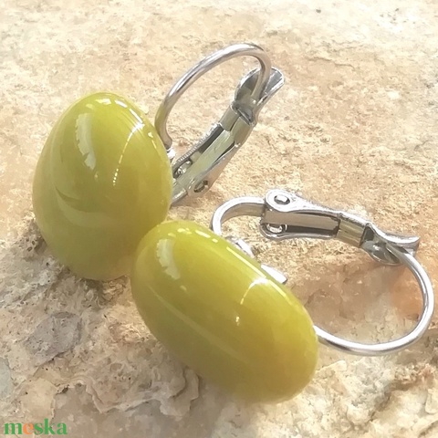 ORVOSI ACÉL! Olíva szinű kapszula formájú trendi üveg fülbevaló.