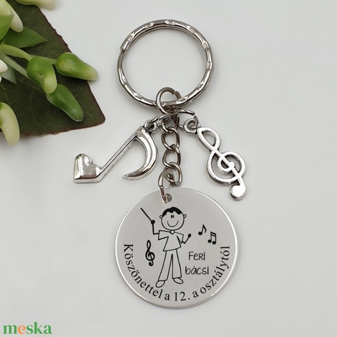 Ajándék énektanárnak ballagásra, pedagógusnapra, tanév végére - Gravírozott grafikás ballagási kulcstartó 3_35.