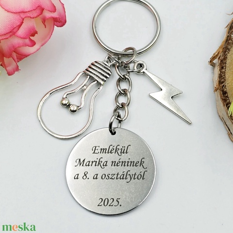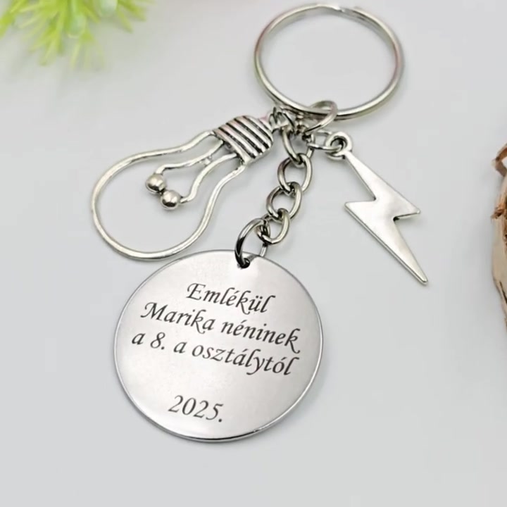 Ajándék fizikatanároknak ballagásra, pedagógusnapra, tanév végére - Gravírozott szöveges ballagási kulcstartó 2.