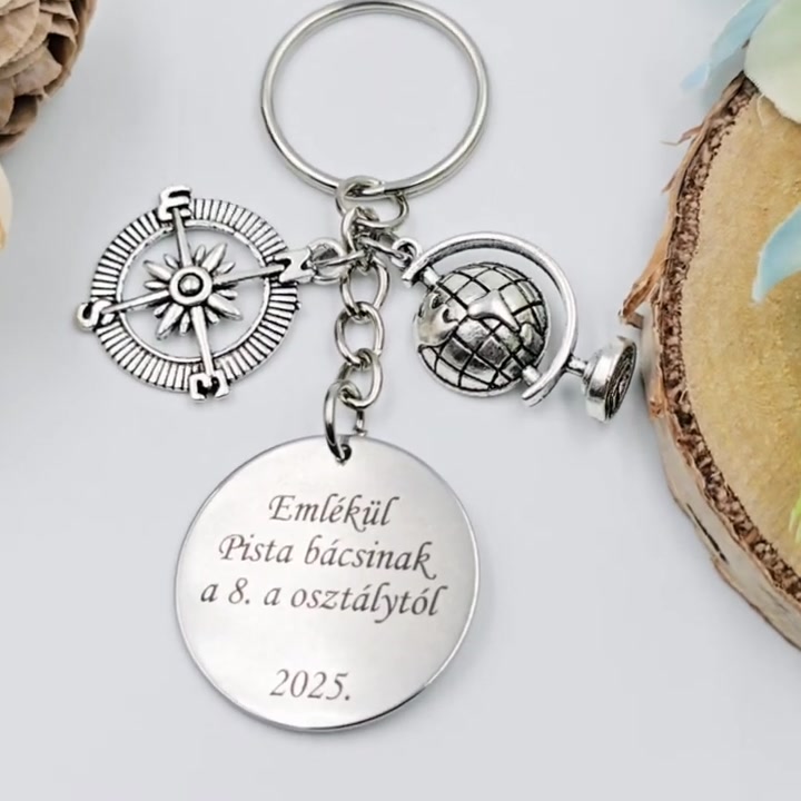 Ajándék földrajztanároknak ballagásra, pedagógusnapra, tanév végére - Gravírozott szöveges ballagási kulcstartó 2.