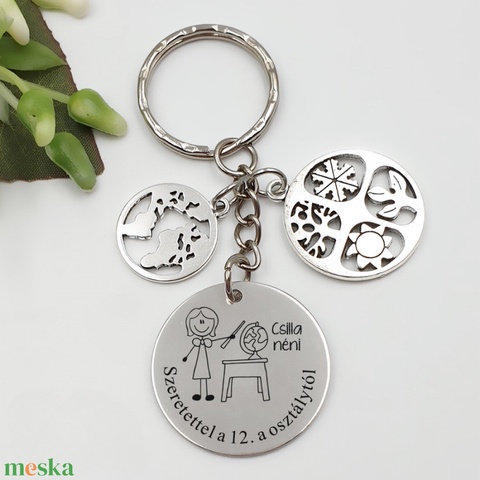 Ajándék földrajztanárnőnek ballagásra, pedagógusnapra, tanév végére - Gravírozott grafikás ballagási kulcstartó 3_25.