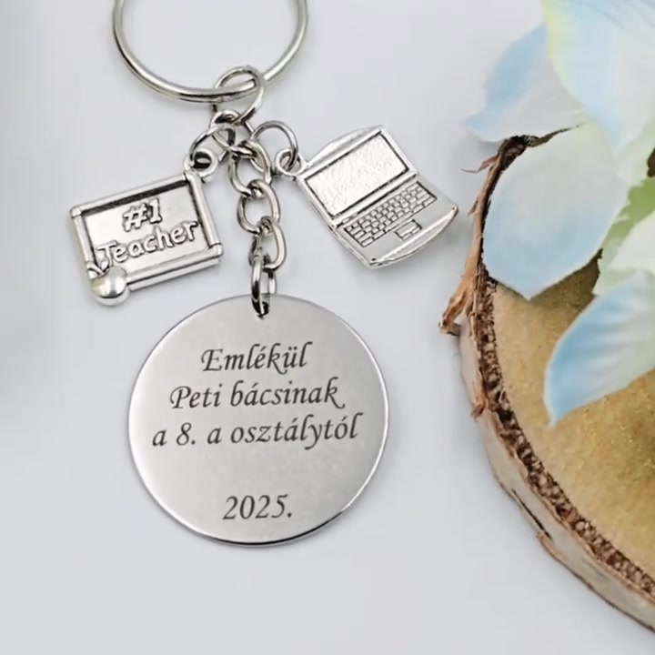 Ajándék informatikatanároknak ballagásra, pedagógusnapra, tanév végére - Gravírozott szöveges ballagási kulcstartó 2.