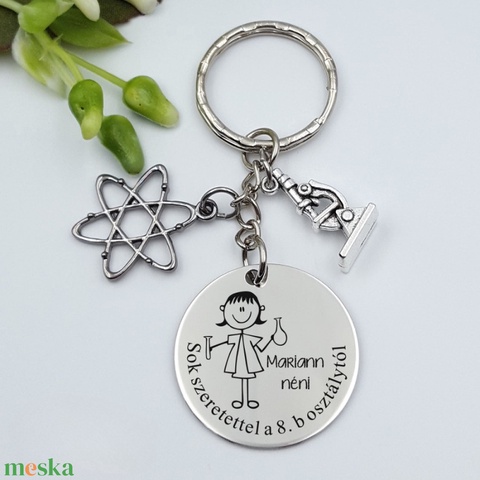 Ajándék kémiatanárnőnek ballagásra, pedagógusnapra, tanév végére - Gravírozott grafikás ballagási kulcstartó 2_29.