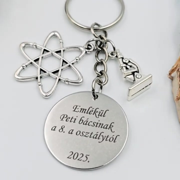 Ajándék kémiatanároknak ballagásra, pedagógusnapra, tanév végére - Gravírozott szöveges ballagási kulcstartó 2.