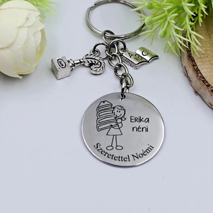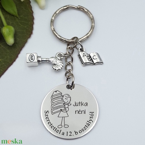 Ajándék magyartanárnőnek ballagásra, pedagógusnapra, tanév végére - Gravírozott grafikás ballagási kulcstartó 1_18.