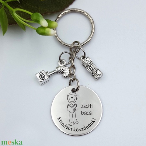 Ajándék magyartanárnak ballagásra, pedagógusnapra, tanév végére - Gravírozott grafikás ballagási kulcstartó 2_17.