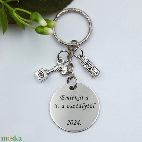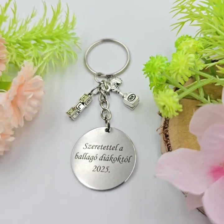 Ajándék magyartanároknak ballagásra, pedagógusnapra, tanév végére - Gravírozott szöveges ballagási kulcstartó 2.