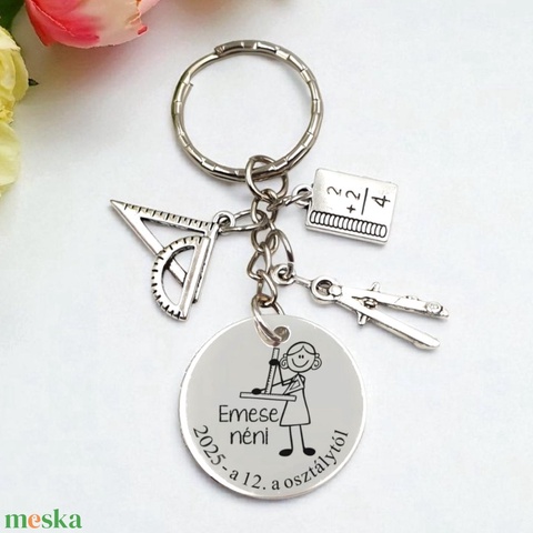 Matematika tanárnőnek ajándék ballagásra, pedagógusnapra, tanév végére - Gravírozott grafikás ballagási kulcstartó 4_21.
